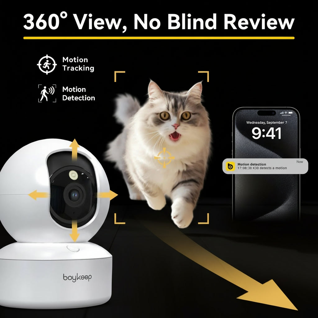 Caméra WiFi Boykeep 3MP Suivi Auto 360° Vision Nocturne 5G/2.4GHz