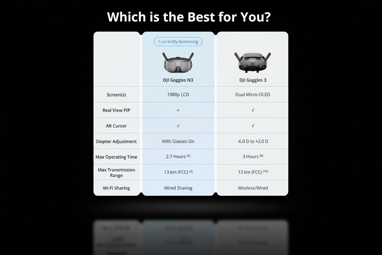 Lunettes FPV DJI Goggles N3 1080p Écran Ultra Large Streaming Sans Fil