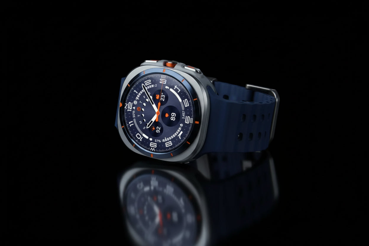 La Samsung Galaxy Watch Ultra 2025 en finition Titanium Blue représente l'excellence de la montre connectée haut de gamme. Conçue pour les esprits visionnaires qui recherchent l'alliance parfaite entre performance, design audacieux et innovation de pointe, cette montre intelligente incarne la fusion entre technologie avancée et esthétique raffinée.