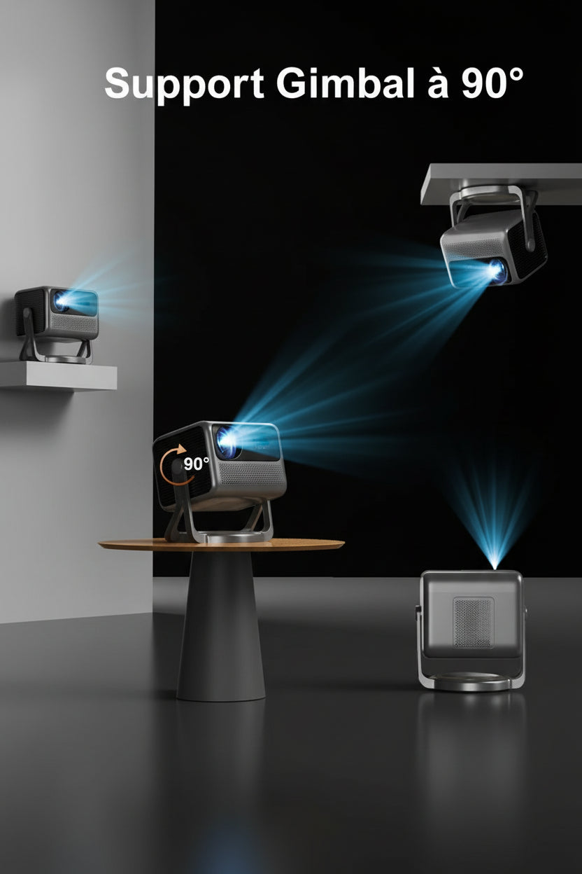 - Gimbal motorisé 90° - Innovation exclusive : orientez la projection du mur au plafond sans bouger le projecteur